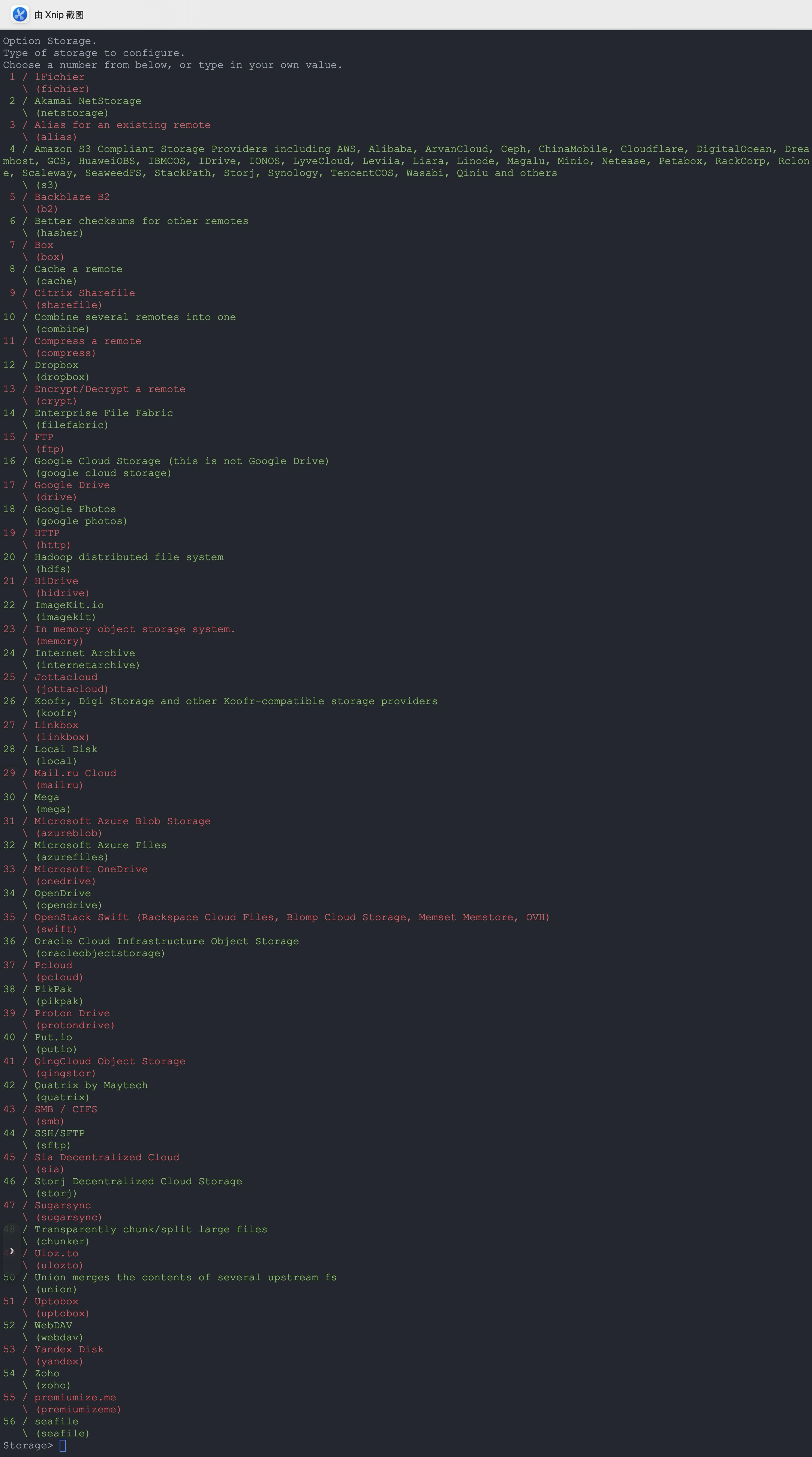 rclone config按提示操作: