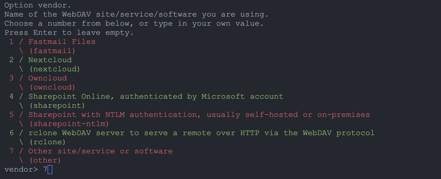 webdav(可输入 ? 查看编号,通常为 52 或类似)。