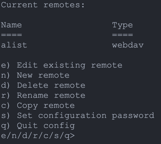 完成后,你会得到一个名为 alist 的 remote。