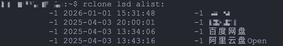 rclone lsd alist:应能列出 AList 中挂载的网盘根目录。