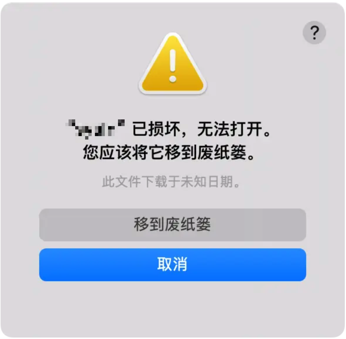 - 提示:“应用程序” 已损坏,无法打开。您应该将它移到废纸篓。